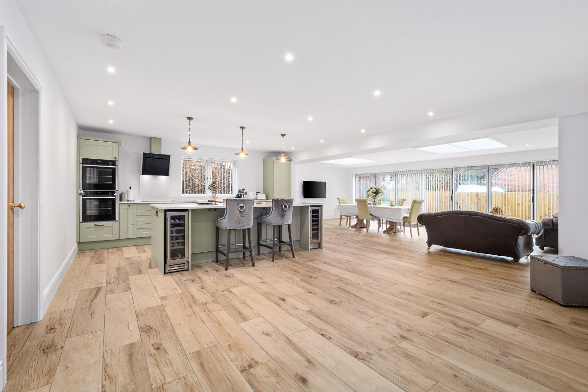 Built by the current homeowners back in 2022, no expense was spared when creating this impressive property with underfloor heating throughout the ground floor. One thing that this home certainly does not lack is open plan living; an impressive statement living / kitchen / dining room offers a space perfect for entertaining and certainly a room that the current homeowners very rarely stray from. A separate living room offers further bi-fold entry onto the rear garden and a room perfect for those evenings in, as well as a further reception space that could be utilised as a formal dining room or study. Also benefitting from a utility housing the warm-air heating system and a w/c.
