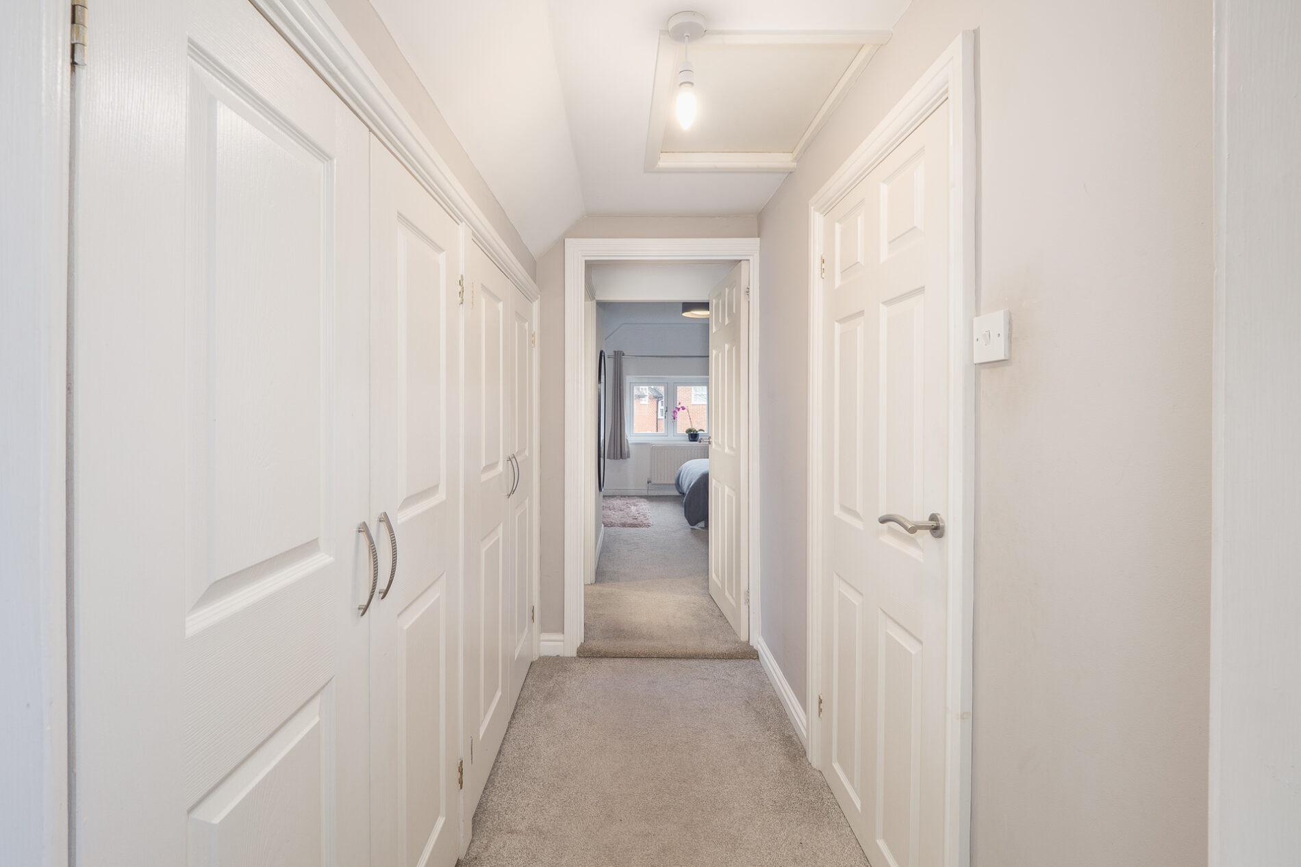 A cloakroom off the entrance hallway along with a large storage cupboard under the stairs and a door through to the kitchen - diner.