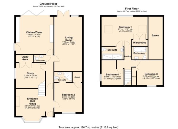 From the moment you step into the light-filled dining hall, you’ll feel the sense of space and welcome. The ground floor flows beautifully, offering a double bedroom with en-suite, perfect for guests or multigenerational living, alongside a cosy family room, a separate dining room/study and a spectacular 23ft living room. At the heart of it all is a show-stopping kitchen/breakfast room, a place made for morning coffees, family suppers and entertaining friends. Fitted with a range of appliances including a hot tap/filter tap.