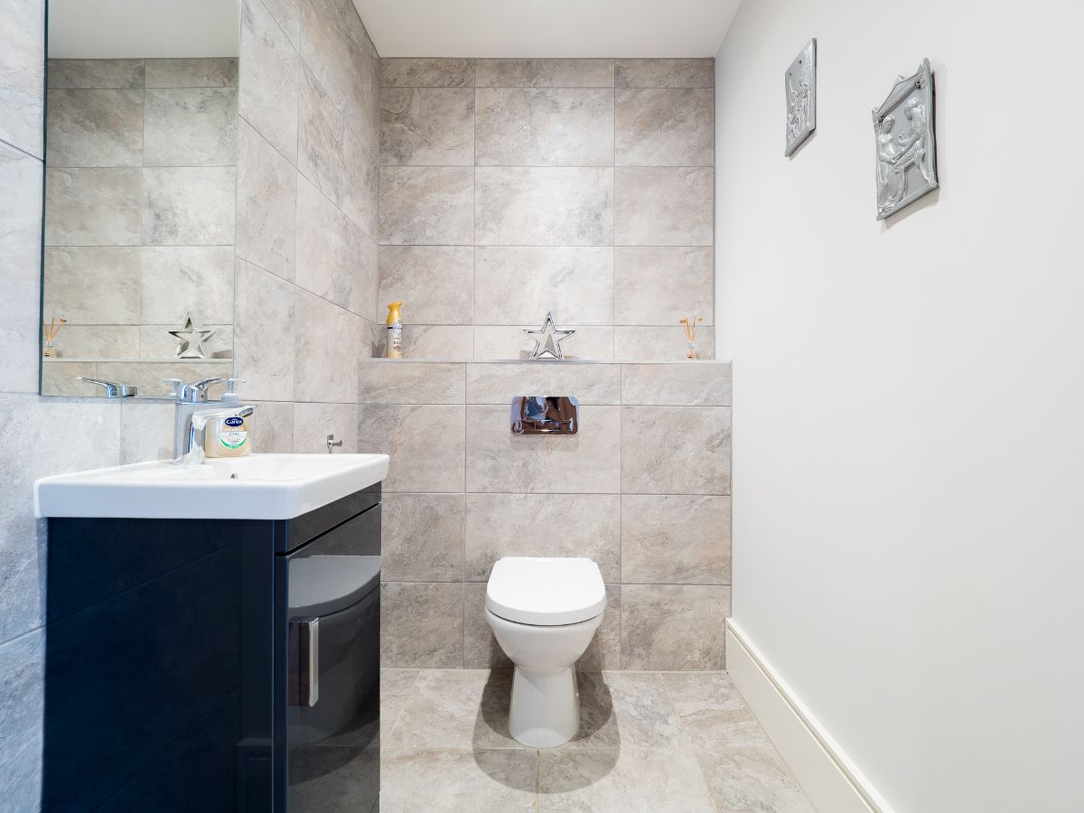 Fully tiled, wash hand basin and WC. Same high spec throughout the cloakroom, bathroom and ensuites.