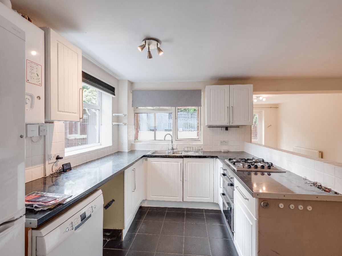 Kitchen /diner/ conservatory with doors onto the low maintenance rear garden
