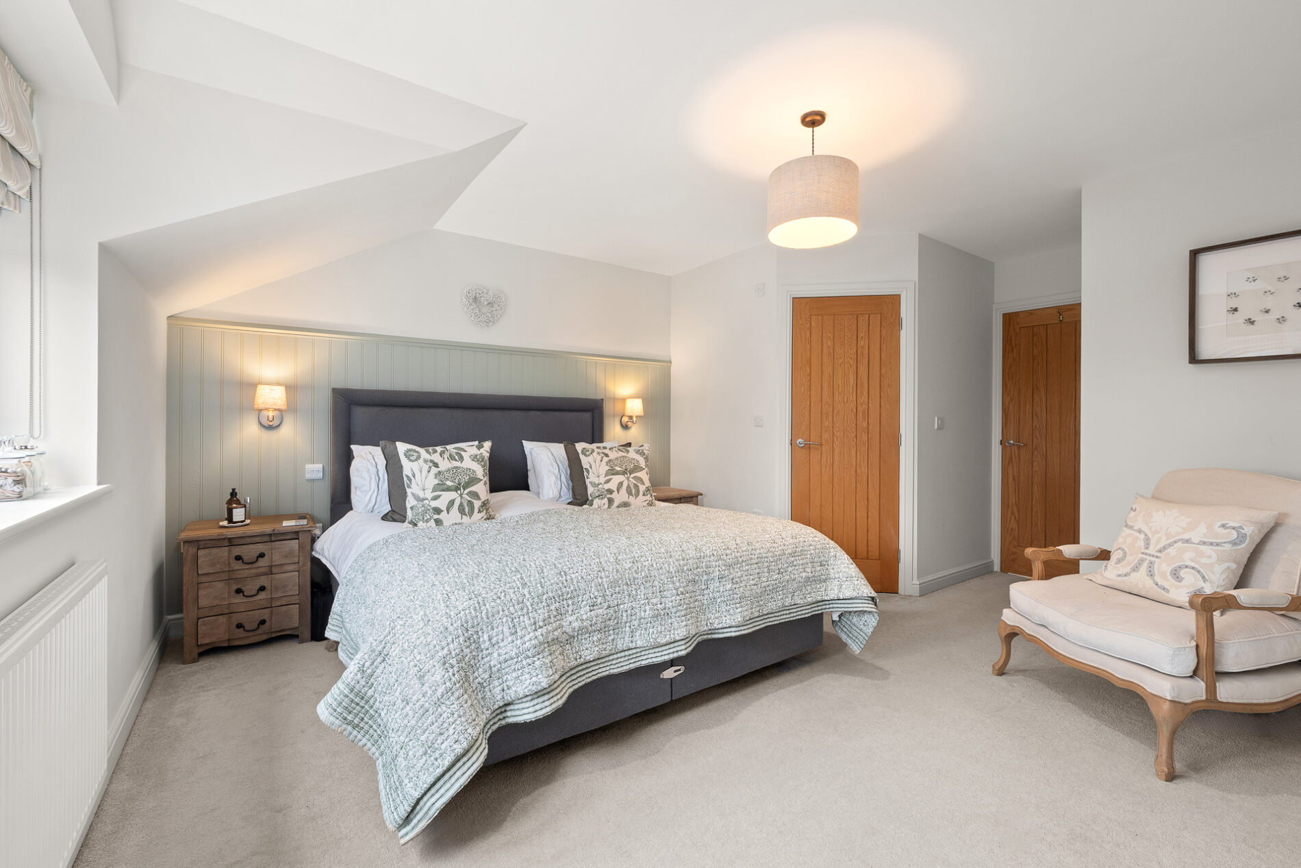Upstairs three generously sized bedrooms await, each offering a peaceful sanctuary with plenty of natural light and flexible layouts to suit your needs. Whether you envision a tranquil principal bedroom complete with en-suite and uninterrupted field views, a vibrant children’s room, or a productive home office. The family bathroom is elegantly appointed featuring quality fittings such as large oval free standing bath and further under floor heating creating a soothing ambience that invites you to unwind after a long day.